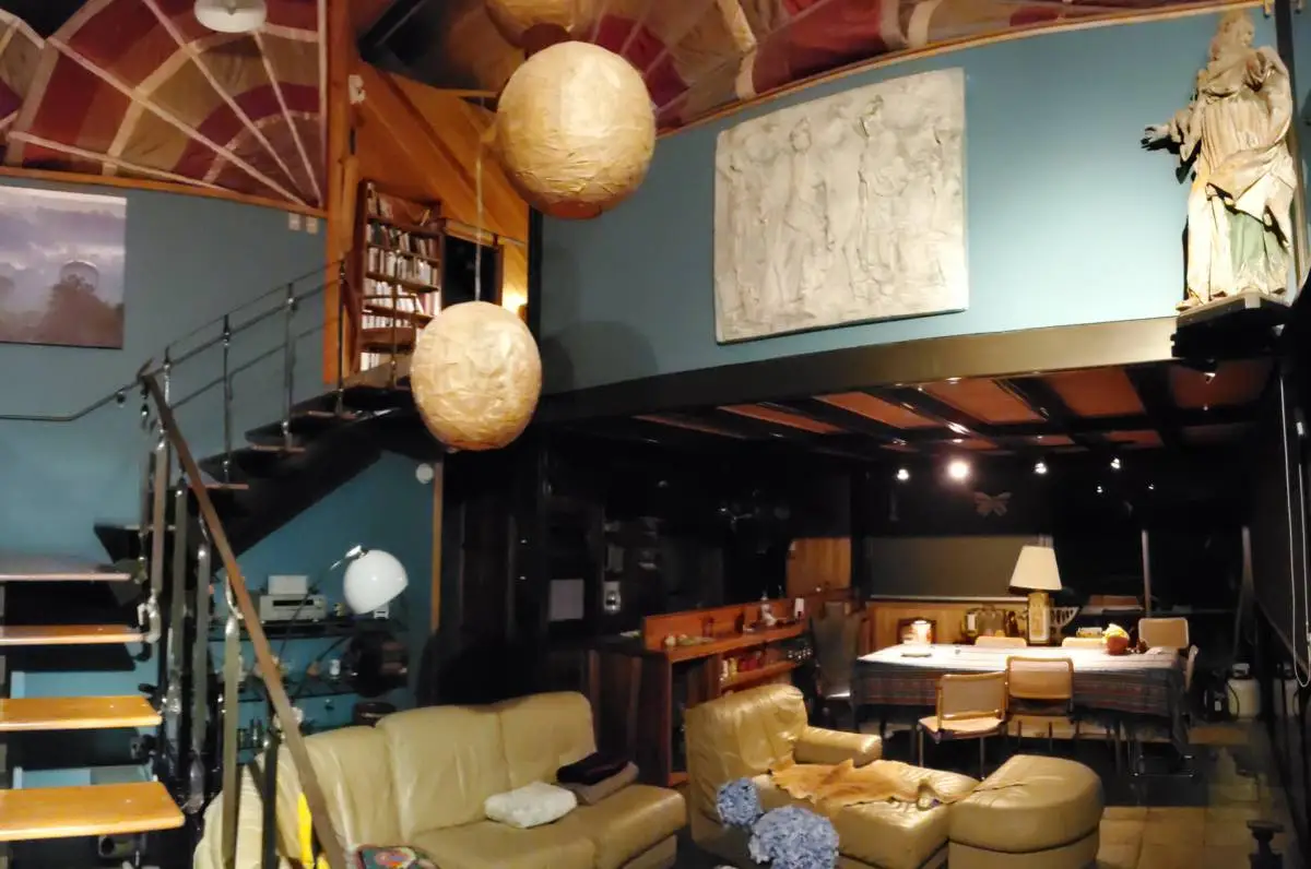 At the top of the stairs is an office for two people, ...